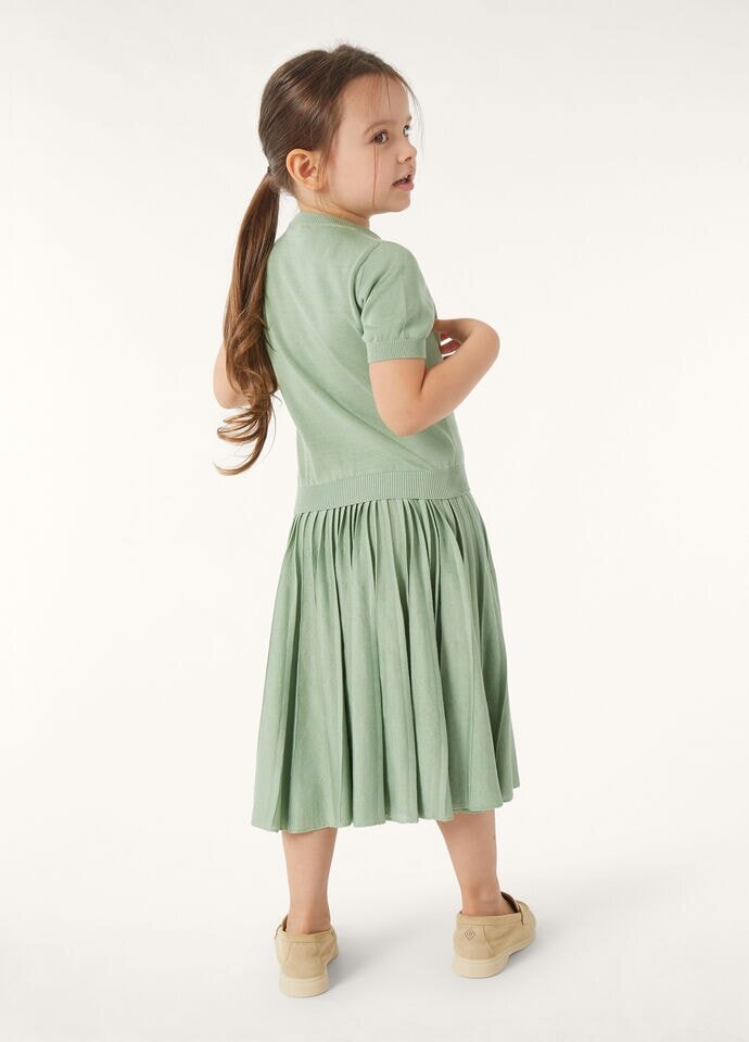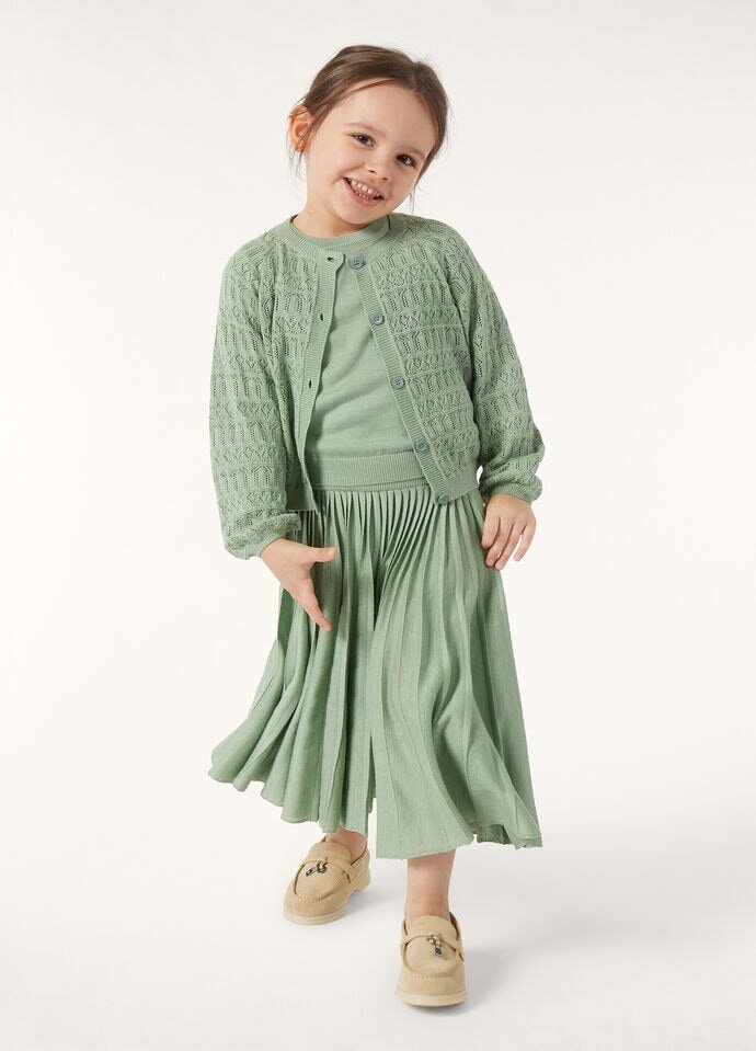 A refined and summery option for little ones, the Jolie sweater is designed with a classic crewneck, neatly set-in shoulders, and ribbed trims. It has a relaxed, balloon-like line and is spun from pure silk yarn worked on a high finesse for an elegant feel – ideal for complementing polished warm-weather ensembles.