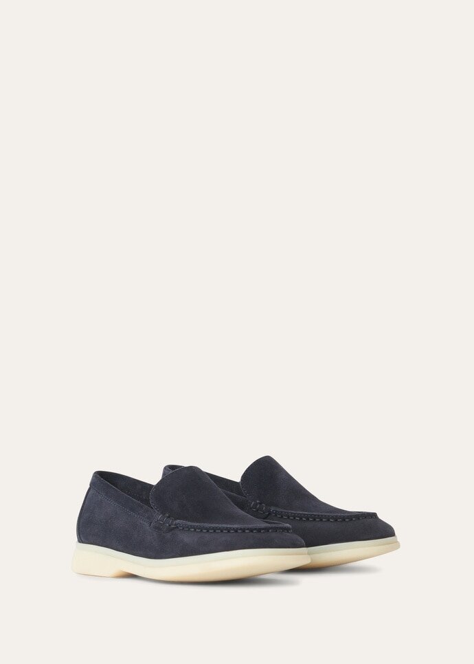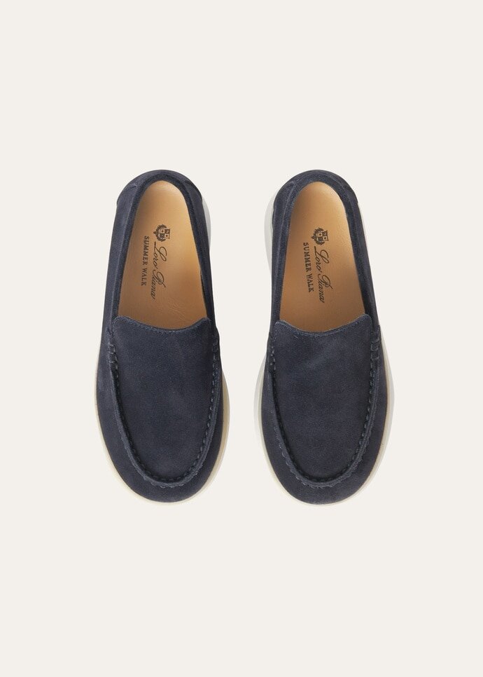 Kid’s classic loafers made from suede with a breathable treatment. They maintain all the iconic details of the adult version, including: non-slip latex soles with a dedicated space on the heels where you can place your name — a hallmark of all Loro Piana footwear.