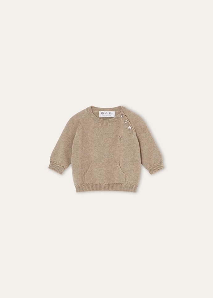 Lightweight, plain-knit crewneck made from extremely soft, fluffy baby cashmere. The meticulously selected, luxury yarn embodies Loro Piana’s commitment to sustainability and respect for the environment, which has always been a hallmark of the brand when it comes to the research, development and processing of raw materials. Enhanced with delicate hand embroidery, it is perfect when worn with the matching Lovely romper or pants.
