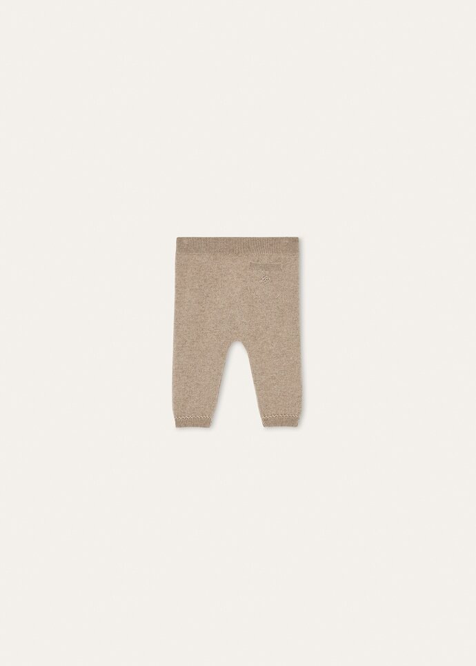 Lightweight, plain-knit pants made from extremely soft, fluffy baby cashmere. The meticulously selected, luxury yarn embodies Loro Piana’s commitment to sustainability and respect for the environment, which has always been a hallmark of the brand when it comes to the research, development and processing of raw materials. When worn with a matching crew neck, it creates a comfortable, warm Baby’s athleisure outfit.