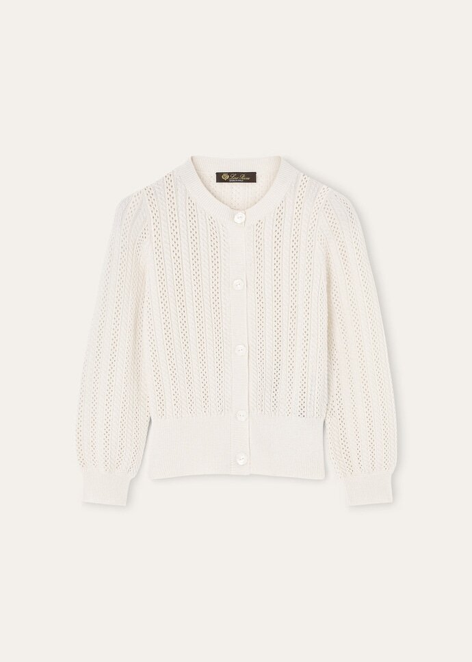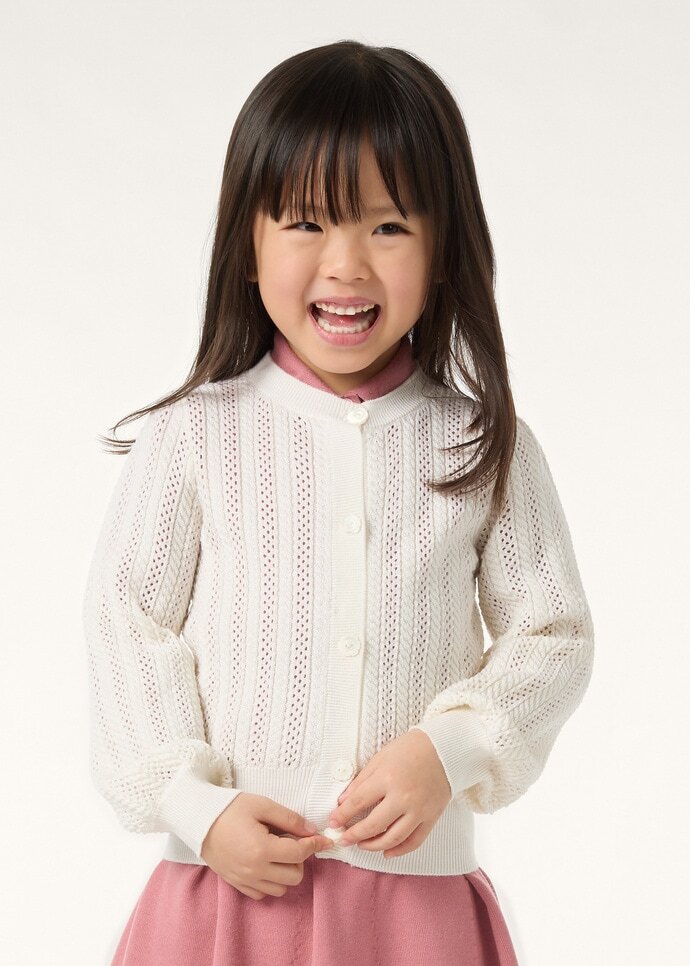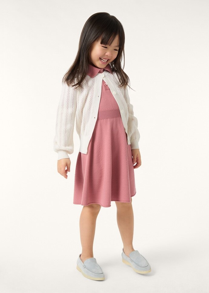 A refined mid-layer for your little one’s transitional outings, the Cherie cardigan has a light, airy texture and a delicate hand. It is spun from Diamond yarn which fuses lustrous silk with fine wool and touches of sumptuous cashmere. Balloon sleeves and a row of daisy-shaped mother-of-pearl buttons add a charming finish.