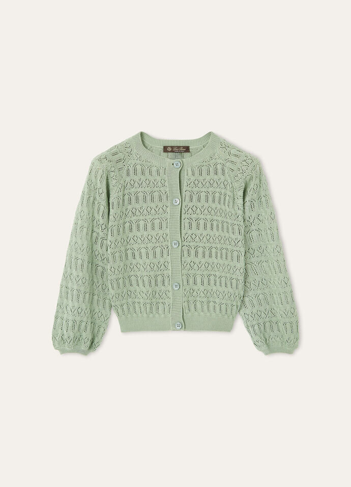 Finished with balloon sleeves and intricate patterning, the Daisy cardigan makes for a charming addition to your little one’s summer wardrobe, perfect for breezy outings or special occasions. Its refined fabric is spun from silk yarn in a pointelle stitch with gentle pleats, lending a delicately textured feel. The front is traced with mother-of-pearl buttons for a luminous finish.