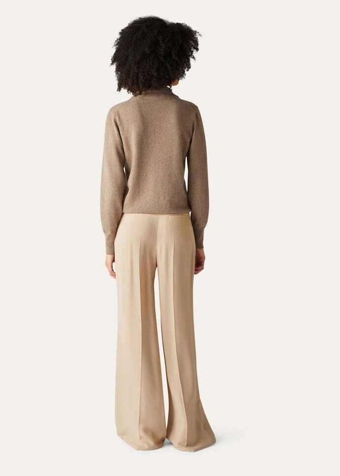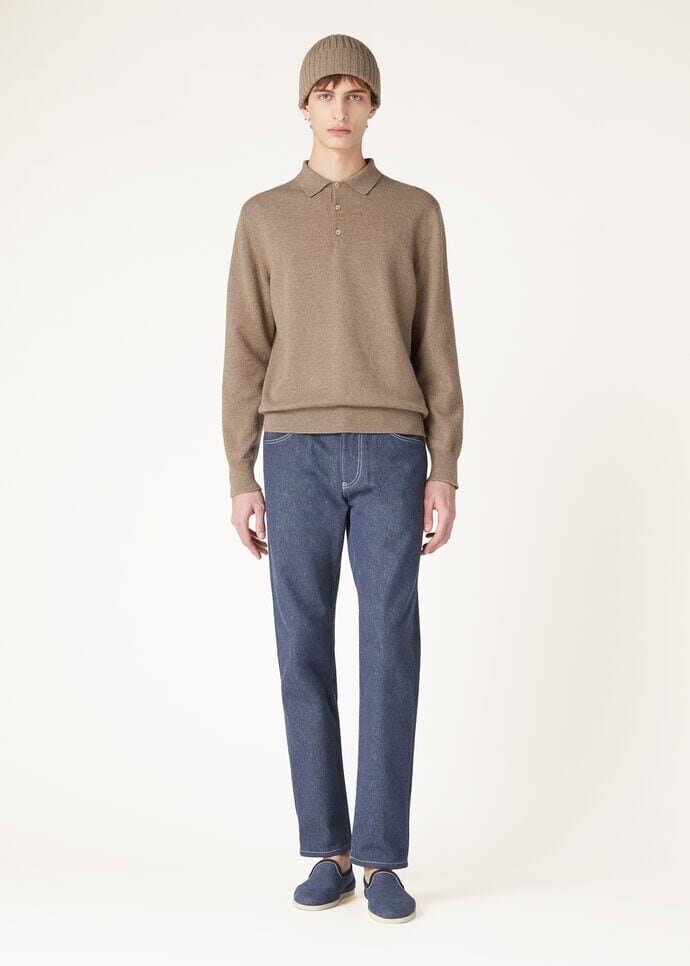 Combining cutting-edge techniques with a commitment to sustainable fashion, Loro Piana has designed a capsule collection crafted from extremely high-quality regenerated cashmere. This regular-fit, long-sleeved polo shirt features a plain-knit texture that is extremely soft and pleasant to the touch. The hybrid cashmere blend is composed of fibers recuperated from entirely unspun garments along with the addition of virgin fibers, thereby maintaining the fibers’ natural qualities intact, while creating a selection of genderless styles that can be endlessly mixed-and-matched and kept forever.