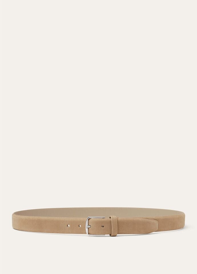 Belt in velvety soft calfskin styled with a square buckle in palladium-finish metal.
