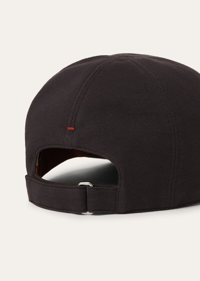 A six panel baseball cap in an exclusive piqué dyed fabric that is casual, light and soft with subtle irregular colors. A departure from the classic model, this design features a slightly tighter crown and an adjustable Velcro strap at the back for a personalized, comfortable fit.