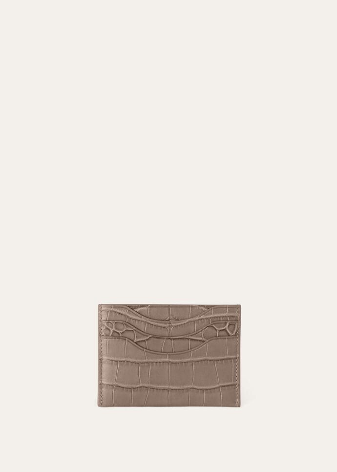 A stylish cardholder, meticulously crafted in exclusive alligator leather, with three open slots featuring a unique wave design. This sophisticated accessory stands out as a discernible symbol of luxury, with the supple leather expertly dyed to enhance its natural aesthetic. Add a touch of opulent sophistication to your everyday accessories.
