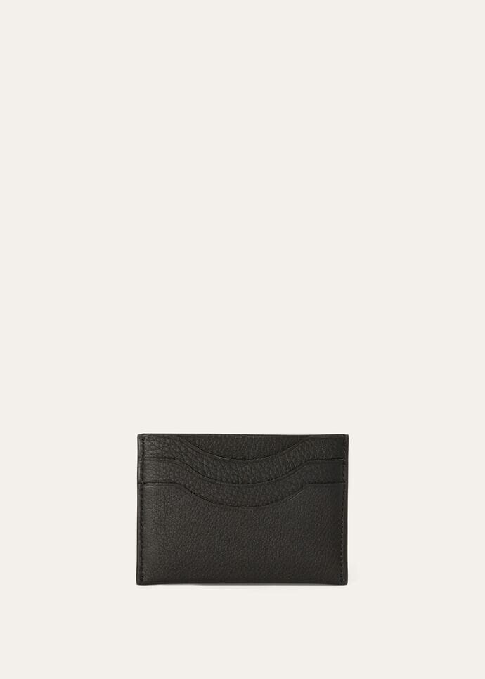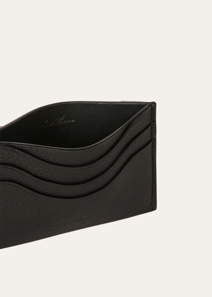 A stylish cardholder, meticulously crafted in exclusive calfskin leather, with three open slots featuring a unique wave design. This sophisticated accessory stands out as a discernible symbol of luxury, with the butter-soft leather expertly treated to enhance its natural grain. Add a touch of opulent sophistication to your everyday accessories.