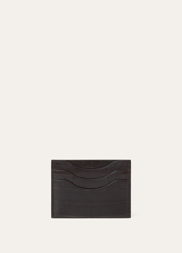 A stylish cardholder, meticulously crafted in exclusive alligator leather, with three open slots featuring a unique wave design. This sophisticated accessory stands out as a discernible symbol of luxury, with the supple leather expertly dyed to enhance its natural aesthetic. Add a touch of opulent sophistication to your everyday accessories.