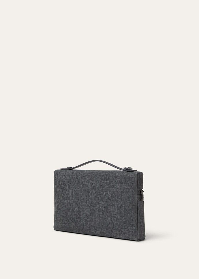 Each accessory is a whisper of individuality, a brushstroke of personality. Grained leather meets smooth leather detailing for this versatile pouch, where practical design elements create a study in textural sophistication. The luxurious texture and clever design make this piece an elegant companion.