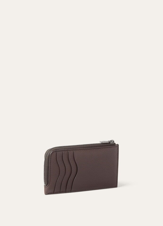 Each accessory is a whisper of individuality, a brushstroke of personality. Waves of calfskin create subtle intrigue in the outer compartment of this pouch, while practical details such as the zipped coin pocket add everyday elegance. The iconic square zip puller adds a sleek signature.