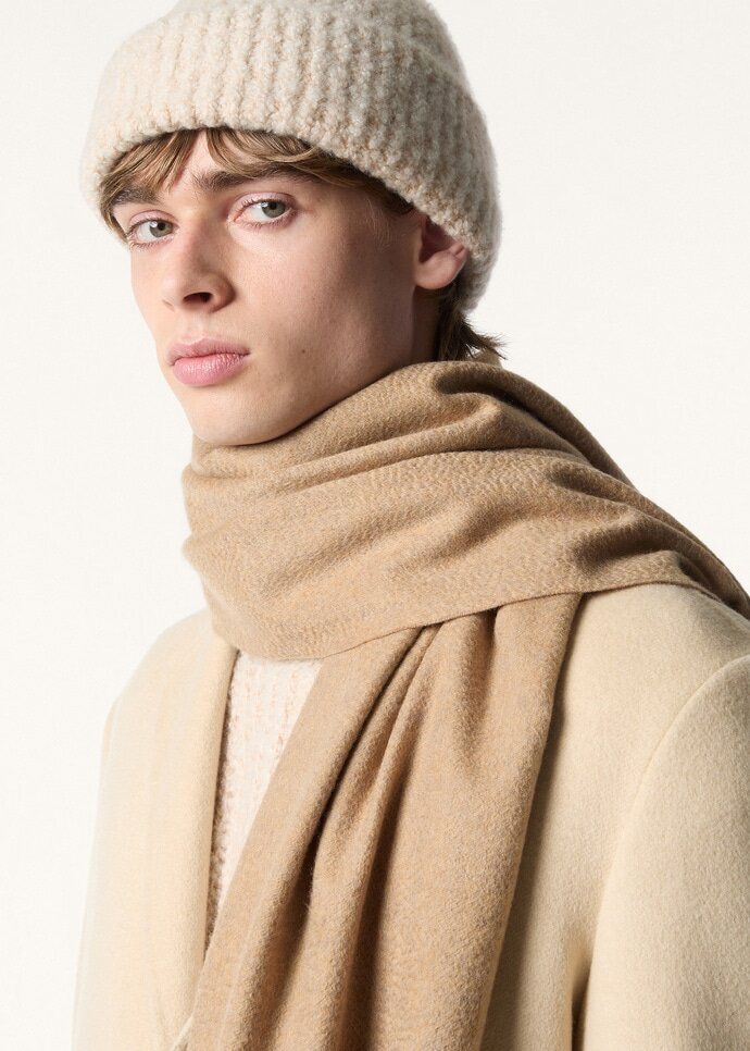 Extra-fine cashmere scarf with exclusive Loro Piana “frisson” finish, which gives the fabric sheen and adds luminosity to the colours. The perfect accessory for formal looks and casual outerwear.