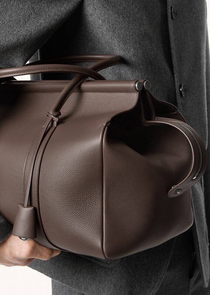 The Loom Weekender bag pays homage to Loro Piana’s centuries-old textile heritage, with the metal bar beneath the flap evoking the gentle cascade of fabric draped across an artisan’s loom – a subtle nod to the brand’s storied weaving techniques. Uniquely textured yet lightweight in exquisite calfskin, the refined padlock that closes the bag can be unfastened, giving it a more relaxed look. Loom can be worn closed or open without losing charm and personality. Even when worn unfolded, the bag gracefully closes by itself. The perfect overnight bag.