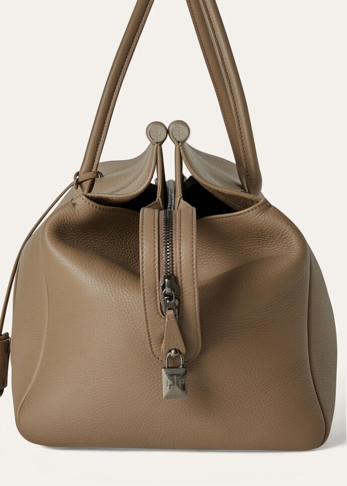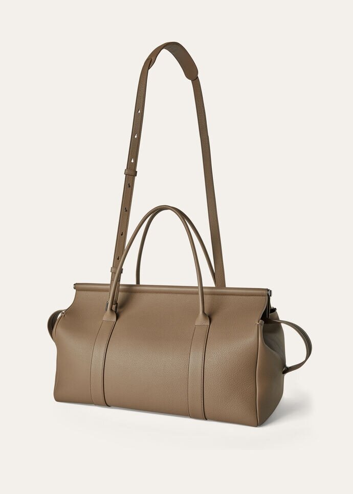 The Loom Weekender bag pays homage to Loro Piana’s centuries-old textile heritage, with the metal bar beneath the flap evoking the gentle cascade of fabric draped across an artisan’s loom – a subtle nod to the brand’s storied weaving techniques. Uniquely textured yet lightweight in exquisite calfskin, the refined padlock that closes the bag can be unfastened, giving it a more relaxed look. Loom can be worn closed or open without losing charm and personality. Even when worn unfolded, the bag gracefully closes by itself. The perfect overnight bag.