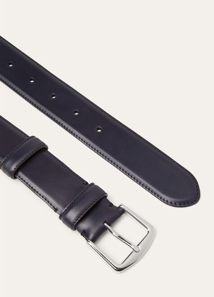 Loro Piana accessories are the golden threads that weave together past and present, each one a subtle symbol of a century-long commitment to uncompromising elegance. This classic calfskin belt features a sleek buckle and is crafted to match shoes made from the same exquisite leather. Characterized by an exceptionally pleasant full and soft feel, the leather exudes an air of country charm.