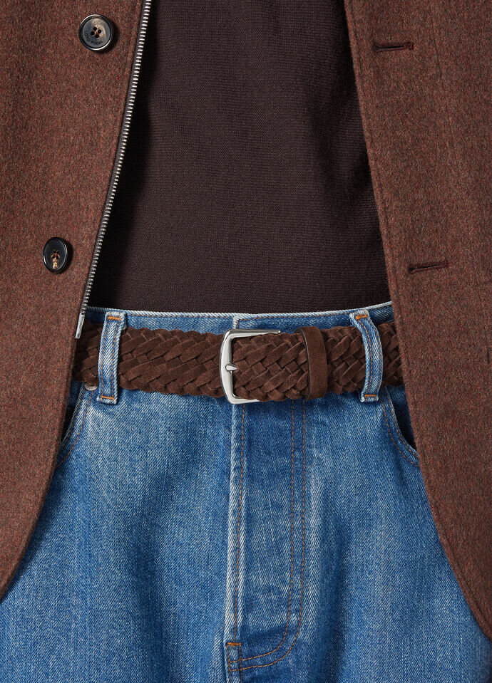 Belt in suede plaited by hand. Treated with a water-repellent, stain-resistant finish, it features a palladium finish buckle and the Loro Piana logo.