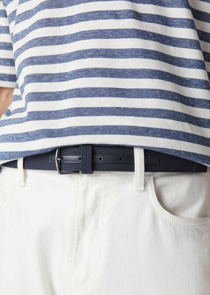 We choose accessories like brushstrokes on canvas; from vibrant panoramas to subtle details, these practical sculptures reflect the complexity of who we are. Crafted from woven cotton and linen, this belt is trimmed with calfskin for a luxurious touch. Whether looped with classic chinos or paired with versatile denim, its subtle elegance adds a touch of bespoke heritage to ensembles.
