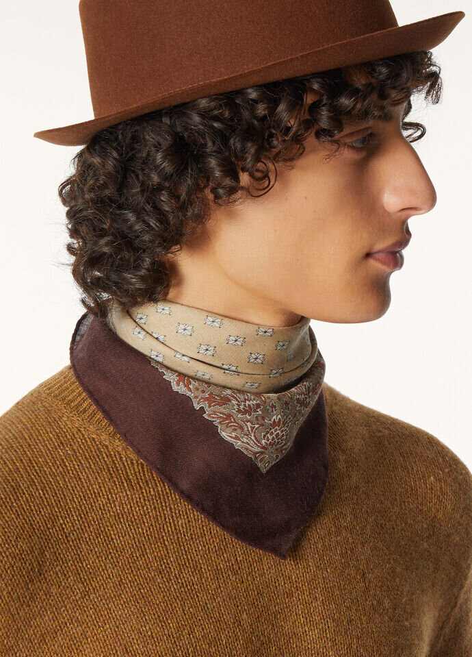 The Loro Piana foulard reflects the Maison’s rich heritage, beautifully complementing any ensemble with understated finesse. A true collector’s masterpiece, this sophisticated square scarf is crafted in luxurious wool and adorned with an exclusive print. The timeless design of the print features tiny stylized flowers resting on a monochrome veil of color, creating a clean, elegant motif of unparalleled versatility.