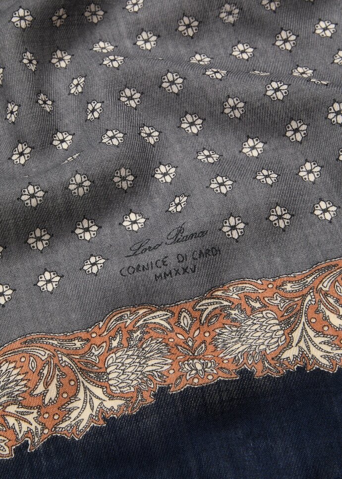 The Loro Piana foulard reflects the Maison’s rich heritage, beautifully complementing any ensemble with understated finesse. A true collector’s masterpiece, this sophisticated square scarf is crafted in luxurious wool and adorned with an exclusive print. The timeless design of the print features tiny stylized flowers resting on a monochrome veil of color, creating a clean, elegant motif of unparalleled versatility.