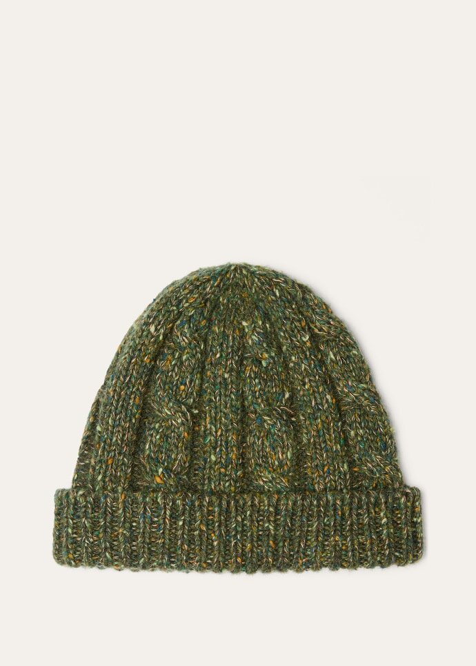 An intricately braided pattern lends the Braemar beanie from the Loro Highlands Capsule collection a sense of tactile elegance. Spun from a sophisticated blend of cashmere and linen, it reveals a subtle tweed effect through a delicate play of texture and color. It is ideally suited to complementing knitwear creations from the curation.