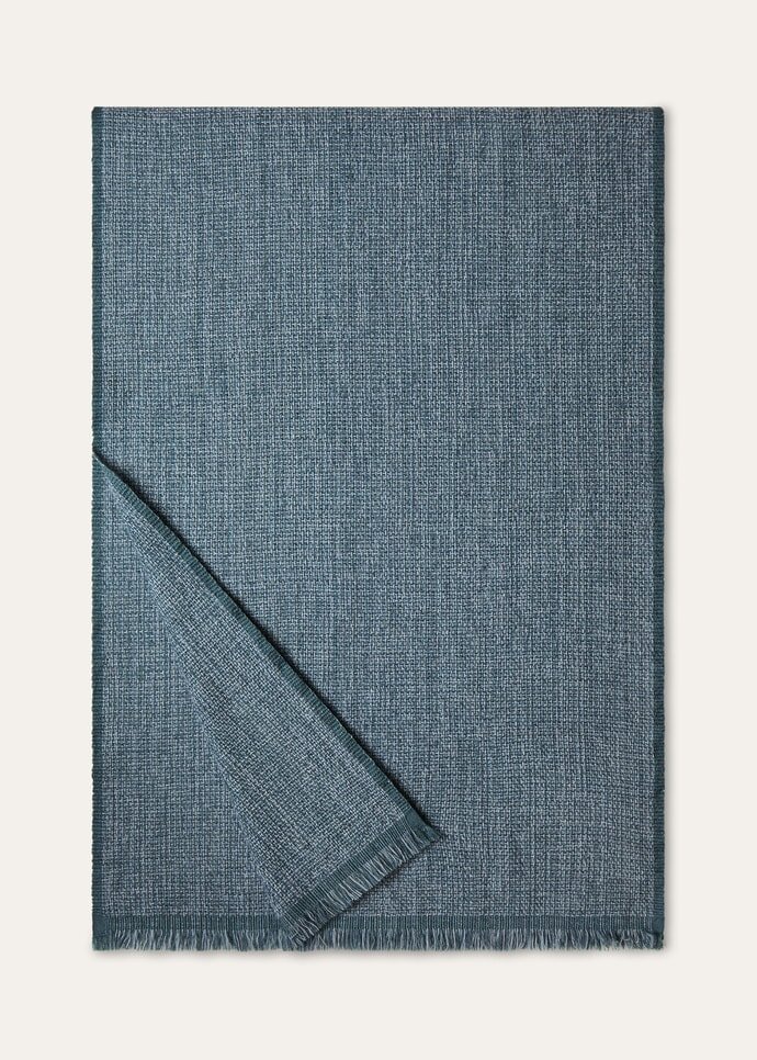 Hand-loomed from baby cashmere and silk, the Medlands scarf is crafted with a gauzed weave that rests featherlight against the skin. This breathable construction enhances the fibers’ natural softness, offering a fluid drape that moves with ease. Contrasting openwork selvage edges introduce a subtle graphic accent.