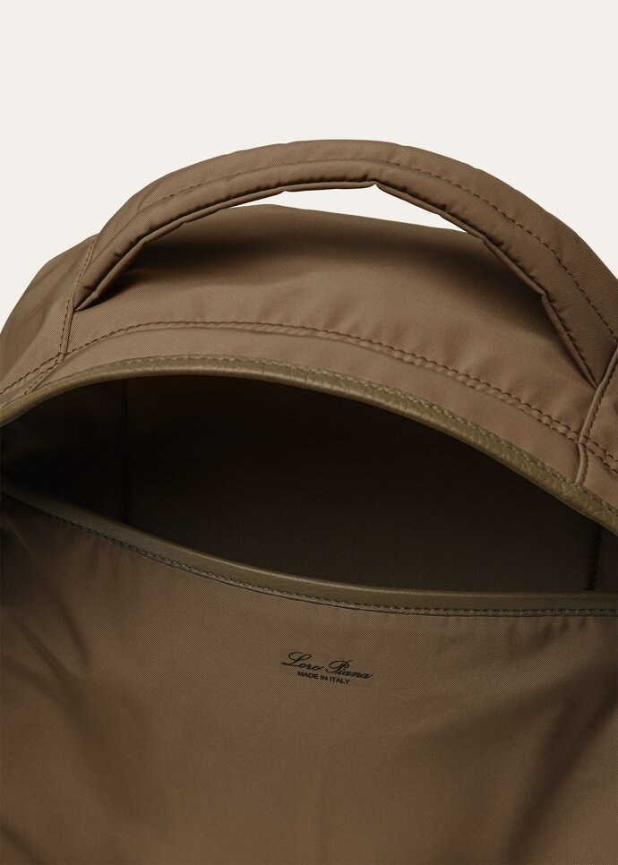 A simple and functional backpack designed for those who refuse to compromise on an elegant and classic look, while maintaining a sporty touch through the combination of two materials: 20k and tender calf. It features a double compartment design, with meticulous attention to detail, including a dedicated laptop pocket inside and a travel strap which allows to conveniently fix the bag onto a suitcase.