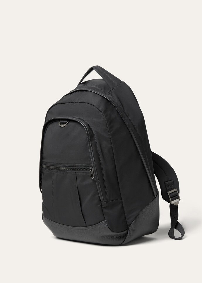 A simple and functional backpack designed for those who refuse to compromise on an elegant and classic look, while maintaining a sporty touch through the combination of two materials: 20k and tender calf. It features a double compartment design, with meticulous attention to detail, including a dedicated laptop pocket inside and a travel strap which allows to conveniently fix the bag onto a suitcase.