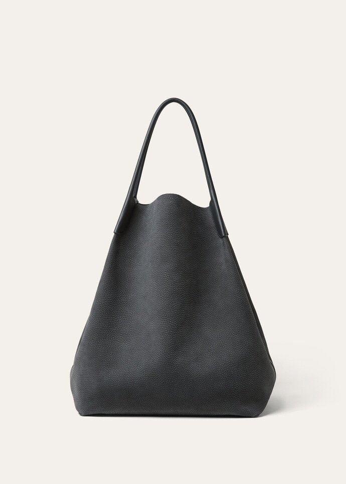 The Bale Hobo Bag, an extra large take on the iconic bucket bag, pays homage to Loro Piana’s textile heritage. Its silhouette, touch, and feel recall the cashmere bales, large bundles of the raw precious material. With an unlined construction and luxurious leather accents, it offers exceptional softness, encapsulating the savoir-faire of the Maison. The double handles offer functionality, while the softness of the grained nubuck leather is a celebration of the senses.