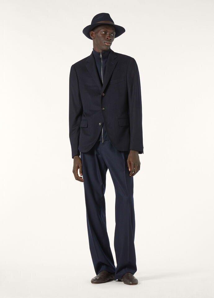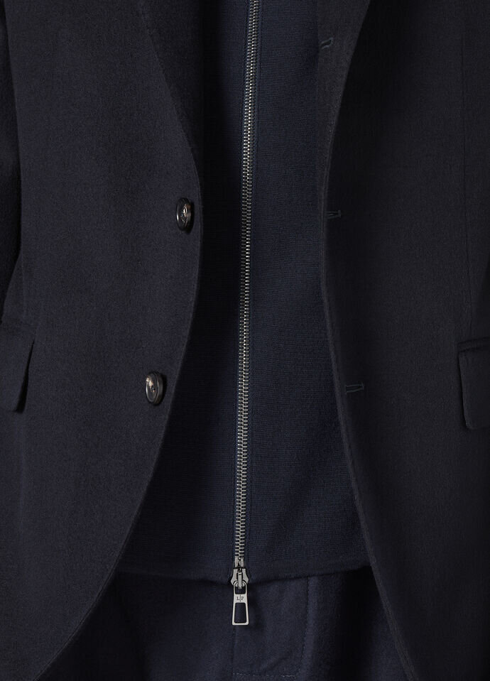 Single-breasted jacket made from lightweight stretch cashmere. Thanks to a Rain System® treatment, it is windproof and water-resistant. It combines sartorial influences with the sporty allure of Wish® wool details. Defined by flowing, large volumes, this lined style is lightweight and comfortable when worn.