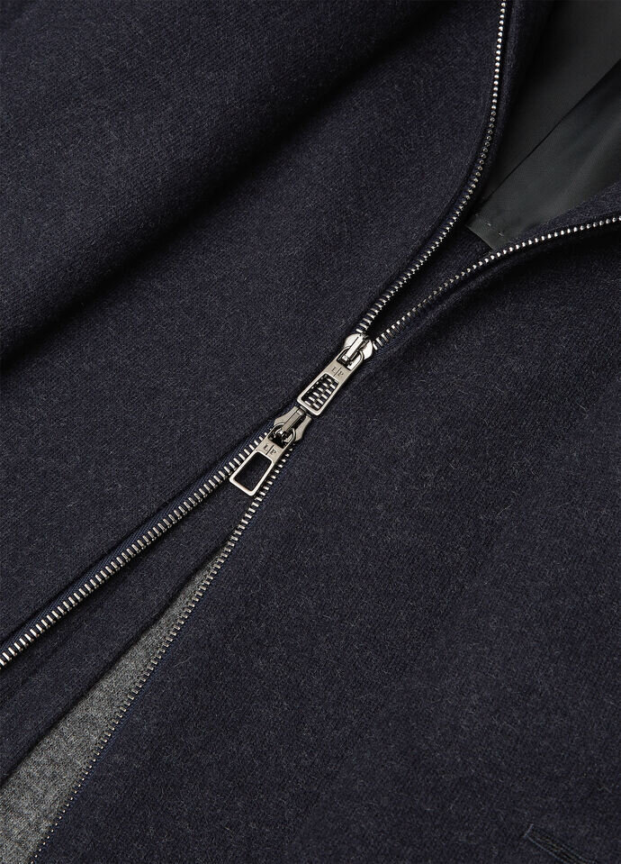 Under-collar panels are precisely hand-stitched to the melton fabric