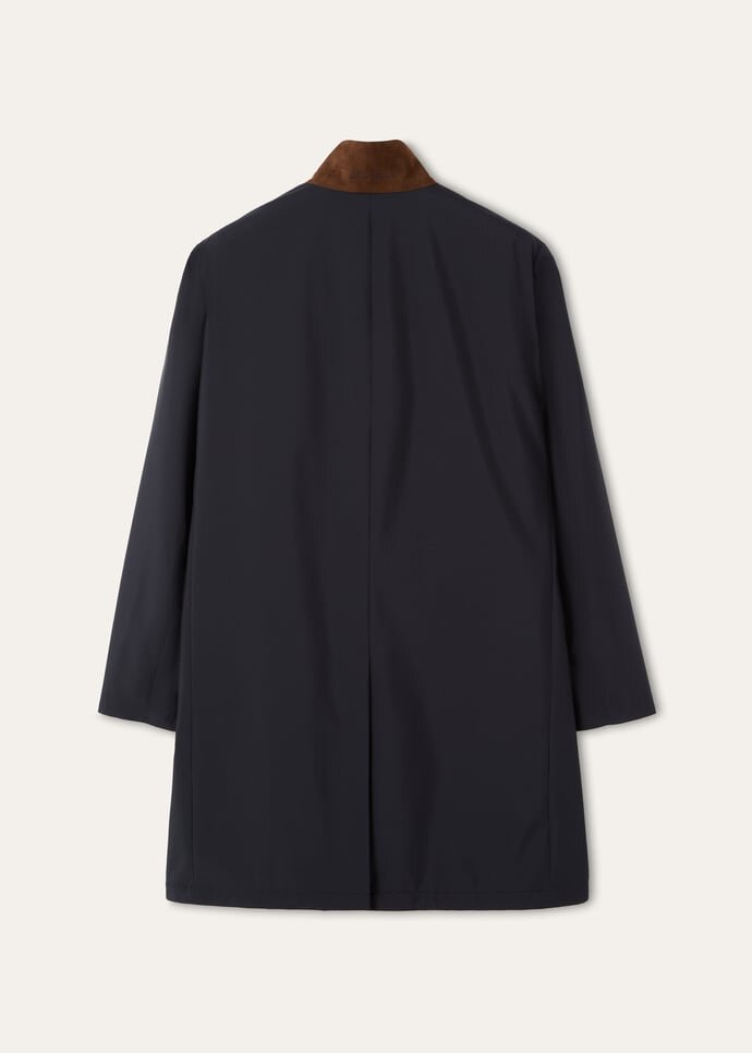 Crafted from Windmate® with a layer of weather-resistant Storm System®, the Sebring coat offers refined protection and style. Its standing collar, lined in suede underneath, can be turned down to evoke the elegance of a tailored jacket. Inside, a knitted cashmere lining provides enveloping warmth.