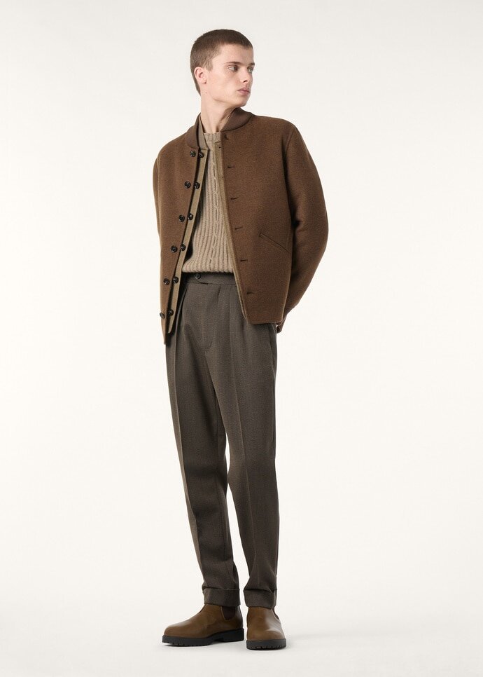 An elegantly textured cable motif runs along the center of the Plane Tree crewneck sweater. It is crafted from sumptuously soft baby cashmere – gathered from the downy underfleece of infant Hircus goats – and dyed with plant-based pigments, revealing a rare mélange of shades. Ribbed edges throughout finish the design with considered structure.