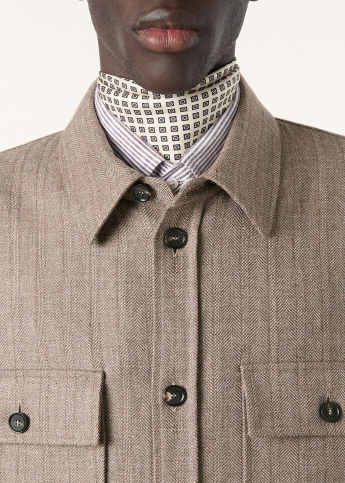 Combining a relaxed cut with a refined style, the Jim overshirt is a versatile garment, suited for layering beneath a jacket or for wear on its own. The design comes in a wool and linen blend with a distinct herringbone weave that lends a textured, irregular look. A special finish ensures the fabric feels full-bodied yet lightweight for ease of wear.