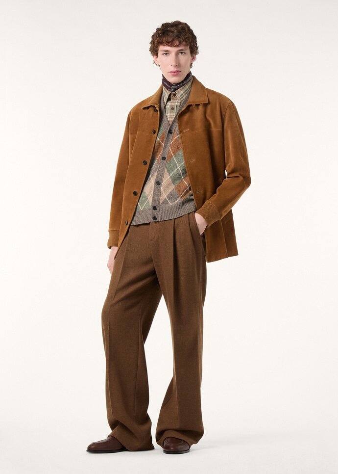 A refined interpretation of the country jacket through the lens of an archival garment, the Maremma from the Loro Highlands Capsule collection is steeped in heritage, its name referencing the eponymous region in Tuscany. Crafted from soft calfskin suede – each piece perfectly proportioned to match the size of the hide – it has an exquisitely soft hand and offers an impeccable fit. The rib-knitted cashmere trim adorning the collar, underarms, and inner cuffs retains a signature detail first seen in the original.