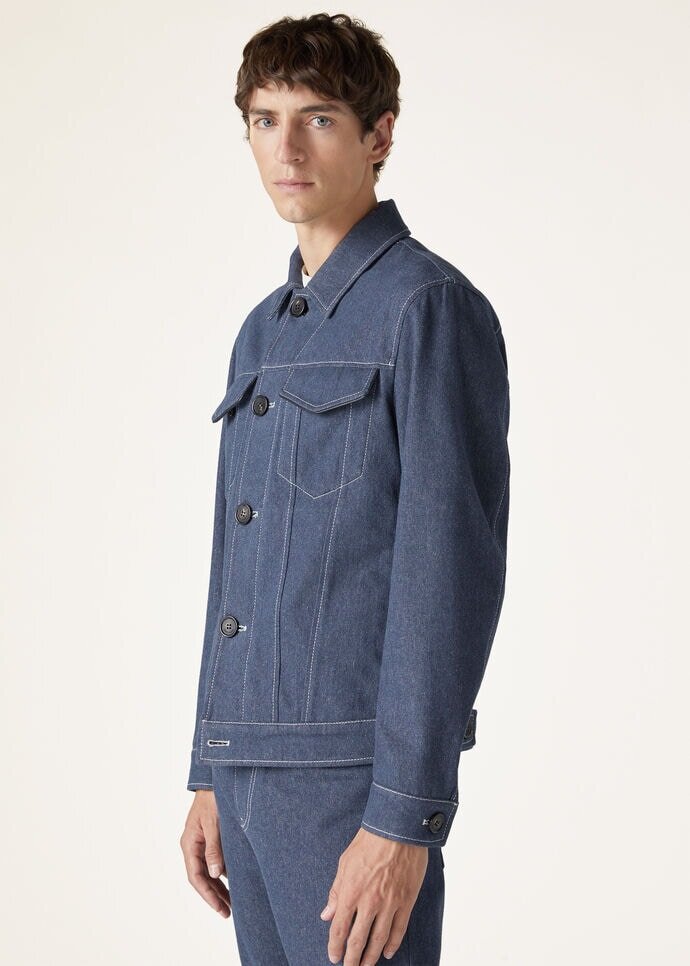An unlined hip-length jacket, a contemporary take on the classic denim silhouette, reimagined with organic cotton denim. Using time-honored techniques, Loro Piana has created this compact denim that is not only hard-wearing but also exquisitely soft to the touch. Inspired by iconic denim jackets, this piece features instantly recognizable double stitching and a fit that pays homage to its timeless origins. Designed for a decidedly athleisure look, it widens gracefully across the chest and tapers subtly to the bottom.