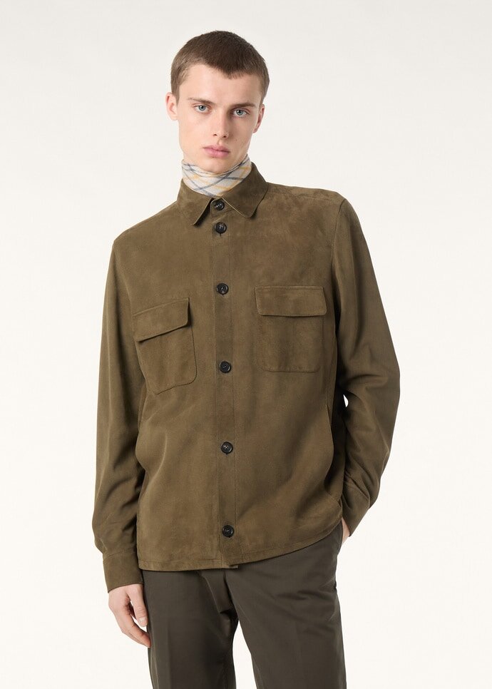 Expertly treated for incredible lightness and a supple touch, the Lowered Suede used for this overshirt lends it a unique sensual feel. It is dyed through a meticulous process that enhances its vibrant full color. Detailed with a classic shirt collar, the relaxed silhouette can be worn as a versatile mid-layer or on its own.