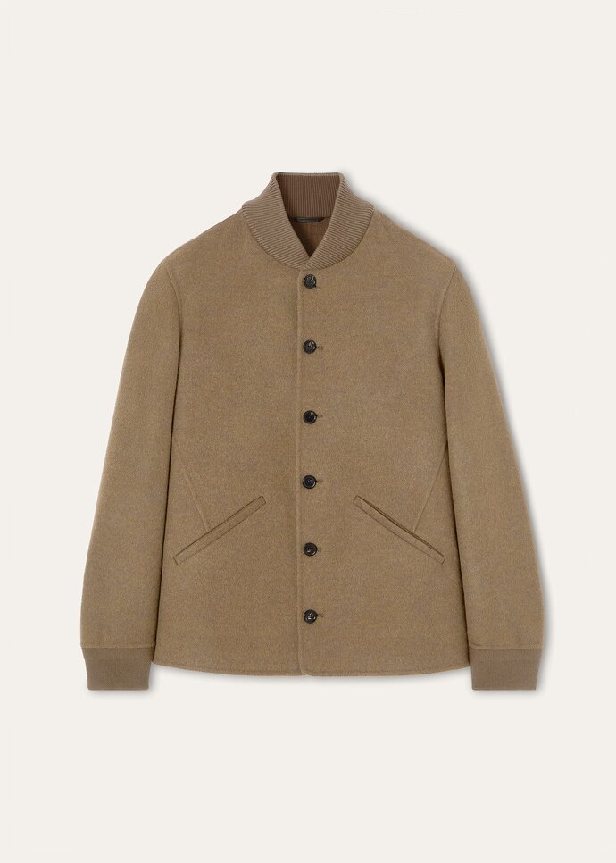Offering refined protection against the elements, the Rik blouson is crafted in double-faced cashmere with contrasting tones on each side. The fabric is formed by hand-joining two layers, and is then gently gauzed and treated with Rain System® to balance the House’s signature sensoriality with resistance against the elements. A timeless classic, it is finished with a varsity-style collar in Wish® wool for an athletic touch.