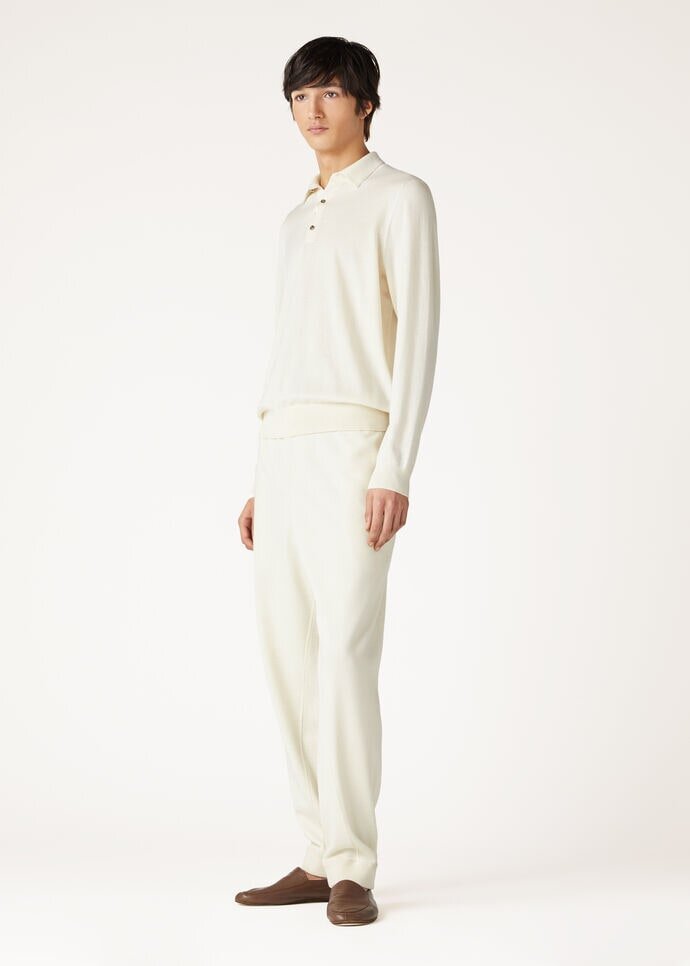 Spun from the first delicate downy tufts of the cashmere kid, Baby Cashmere is an exquisite rarity – ethereally soft, ultra-fine fibers that whisper of nature’s most precious gifts. With a three-button placket, this long-sleeved polo shirt wraps the body in a soft embrace of this special fiber. Its regular fit and natural hue make it a versatile piece that works effortlessly with both casual and more refined ensembles.