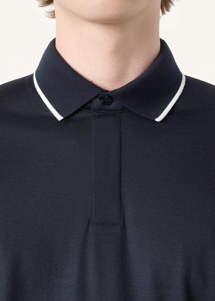 New Zealand’s evocative natural landscape is embodied in an extremely luxurious knitwear selection. Crafted from soft Wish® wool jersey, this long-sleeved, ribbed polo shirt guarantees an extremely flowing, comfortable fit. The ultimate garment for wearing under a jacket, it can be layered with the collection’s outerwear and pullovers.