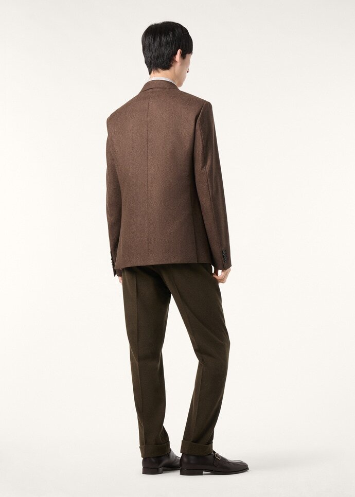 Honoring classic tailoring codes, with hand-finished details, the Milano blazer is a signature silhouette crafted as an homage to the elegance of Sergio Loro Piana. It is rendered in Wish® wool flannel with a hint of sumptuous cashmere – and traced with a melton undercollar, canvas accents on the lapels, and a cotton insert along the hem for full-bodied shape.