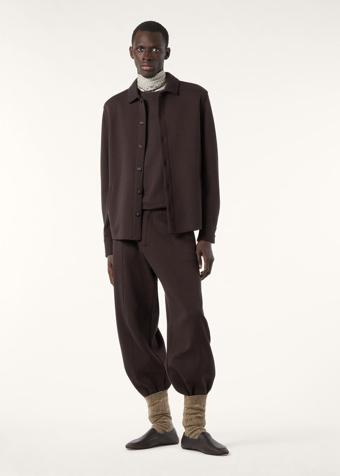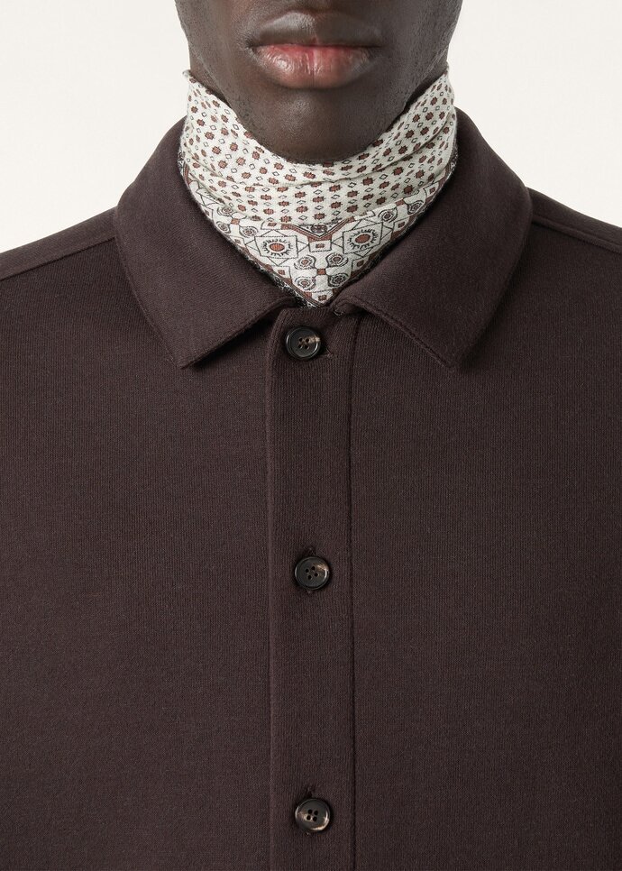 A symphony of refined elegance, Loro Piana shirts are a combination of impeccable tailoring and sumptuous fabrics. The new version of the Whitney overshirt in luxury fleece is a study in contrasts, its double cotton and cashmere jersey exterior a coys embrace while the silk lining is a secret indulgence against the skin. With its straight clean fit and button detailing, this lightweight, practical and versatile piece effortlessly combines the functionality of a jacket with the classic esthetic of a shirt.