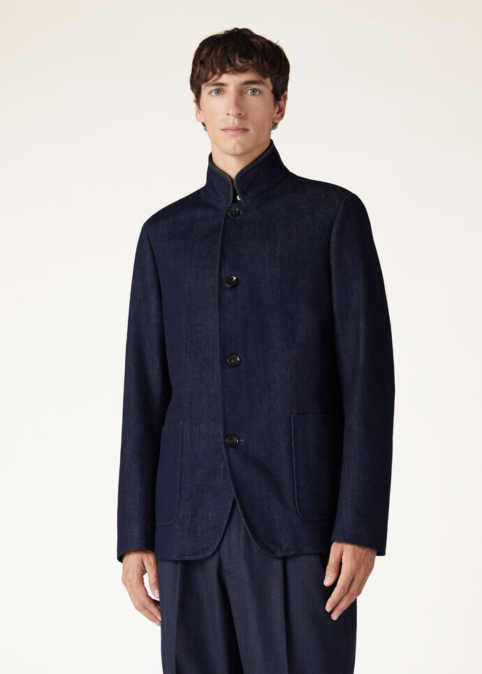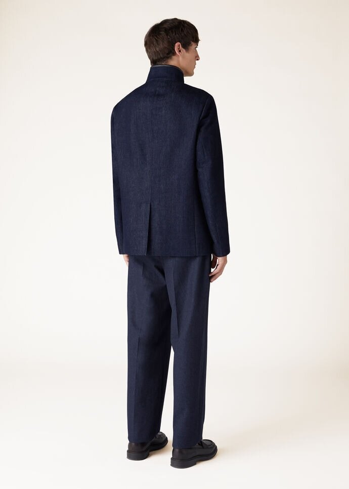 A symphony of nature unfolds with this contemporary interpretation of the Spagna jacket, defined by an upright collar and exceptional fabric quality. Lightweight and almost entirely unlined, it is beautifully crafted from rich, soft CashDenim®, embodying Loro Piana’s commitment to unparalleled textile quality. With its casually refined lines, it transcends the seasons with timeless elegance.