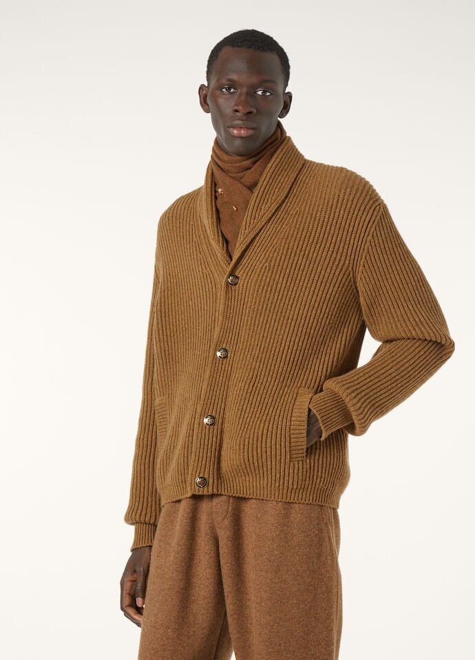 Gathered just once from each infant Hircus goat, Baby Cashmere embodies nature’s fleeting perfection – a cloud-soft whisper of unparalleled luxury. Crafted from this special yarn, this long-sleeved cardigan with a shawl collar, internal side pockets, turned-up cuffs and center button fastening is a testament to the power of understated elegance. This piece is the perfect choice for making a subtle yet compelling statement.