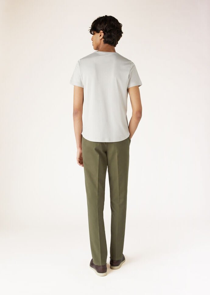 Crafted from cotton-and-silk jersey, this basic short-sleeved T-shirt is defined by an innately sporty summertime allure. Fresh cotton and glossy, lightweight silk are combined to create a soft, opaque texture, evoking the summertime vibes of far-off islands and the collection’s decidedly laidback spirit.