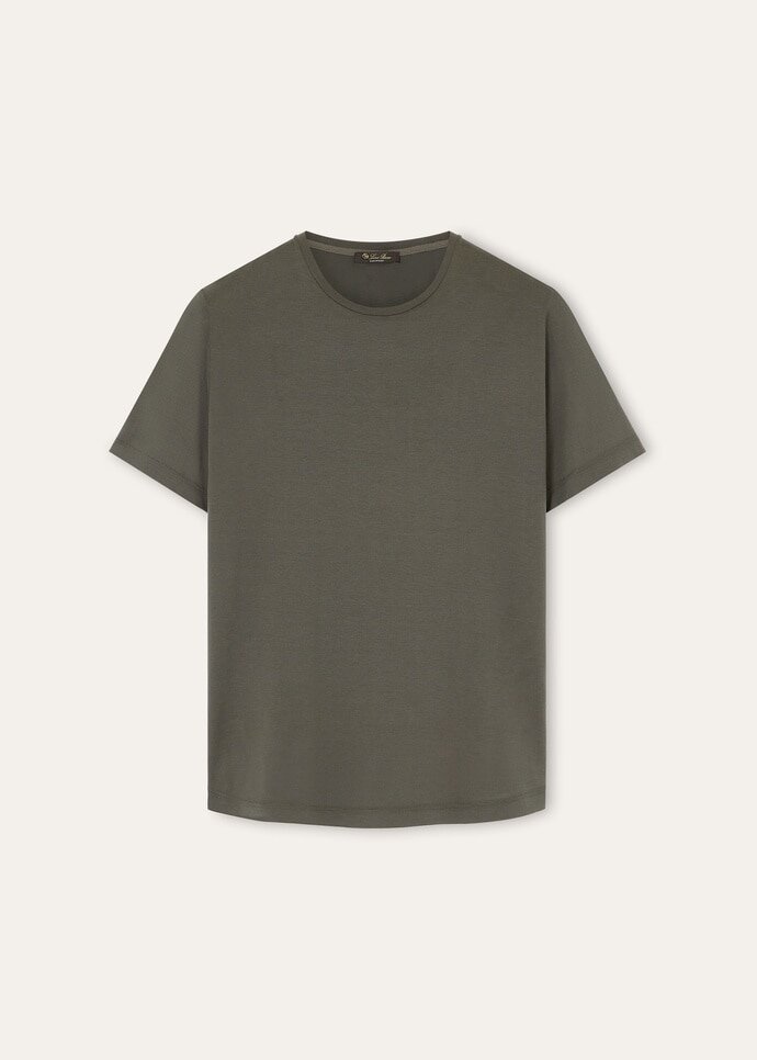 Crafted from cotton-and-silk jersey, this basic short-sleeved T-shirt is defined by an innately sporty summertime allure. Fresh cotton and glossy, lightweight silk are combined to create a soft, opaque texture, evoking the summertime vibes of far-off islands and the collection’s decidedly laidback spirit.