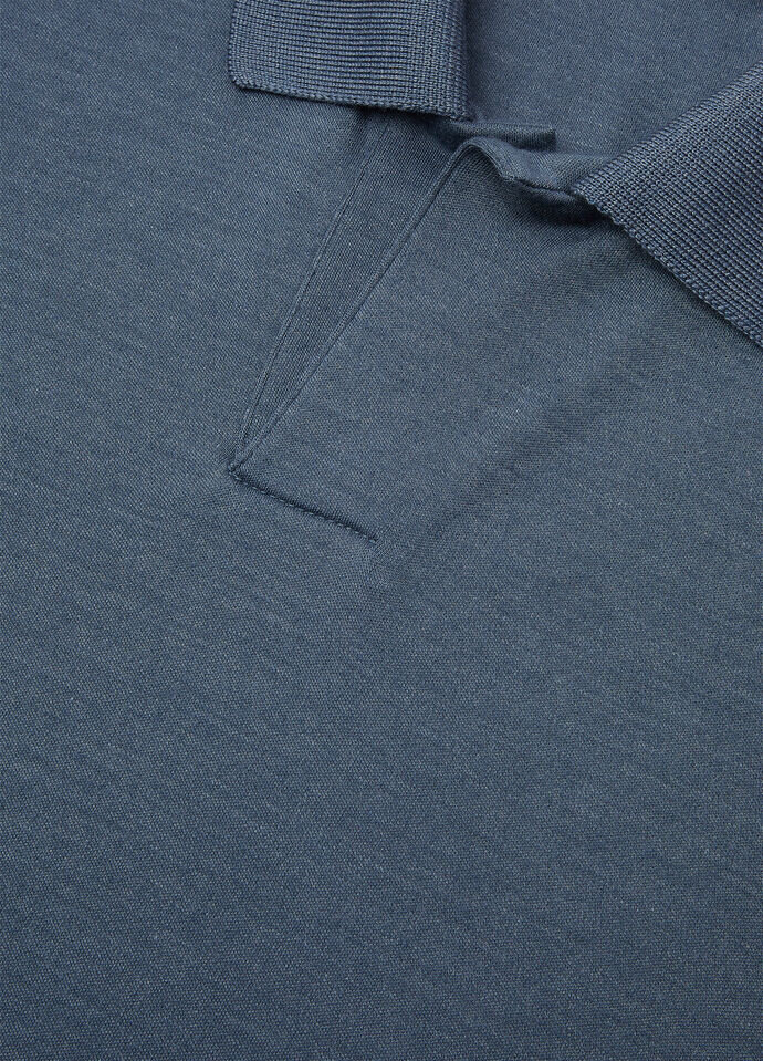 Short-sleeved polo shirt made from soft, compact, cashmere-and-silk jersey. This iconic Loro Piana style is entirely crafted with a plain, plated knit for a versatile, sportswear allure. A small bib collar with single-button closure completes the look.