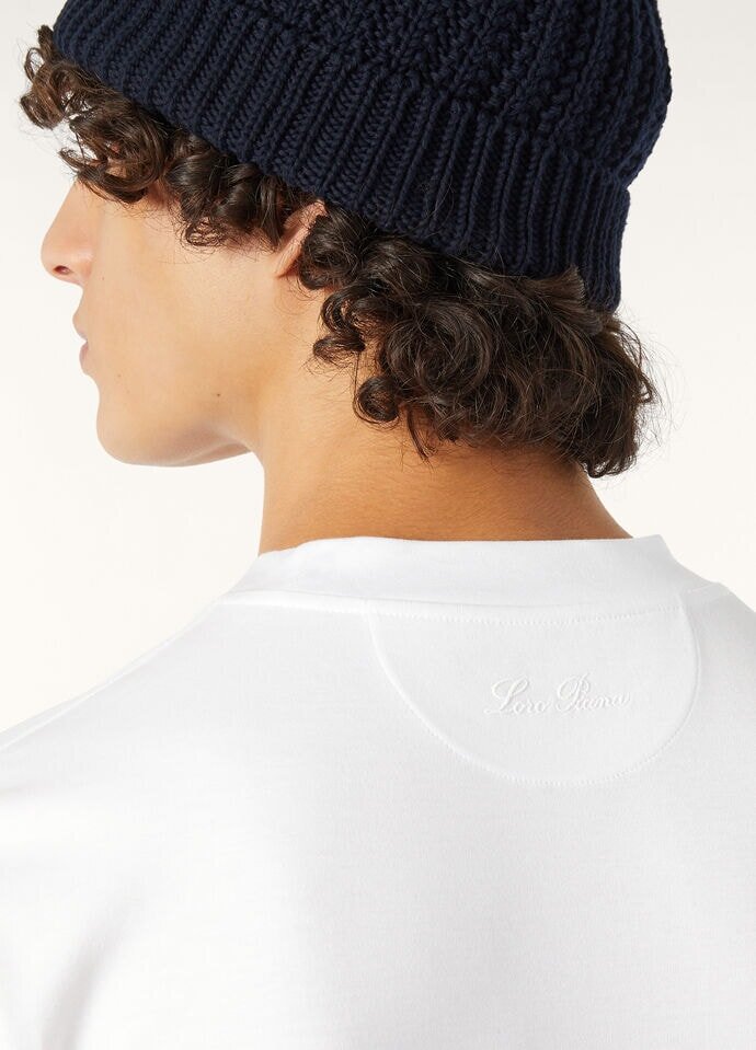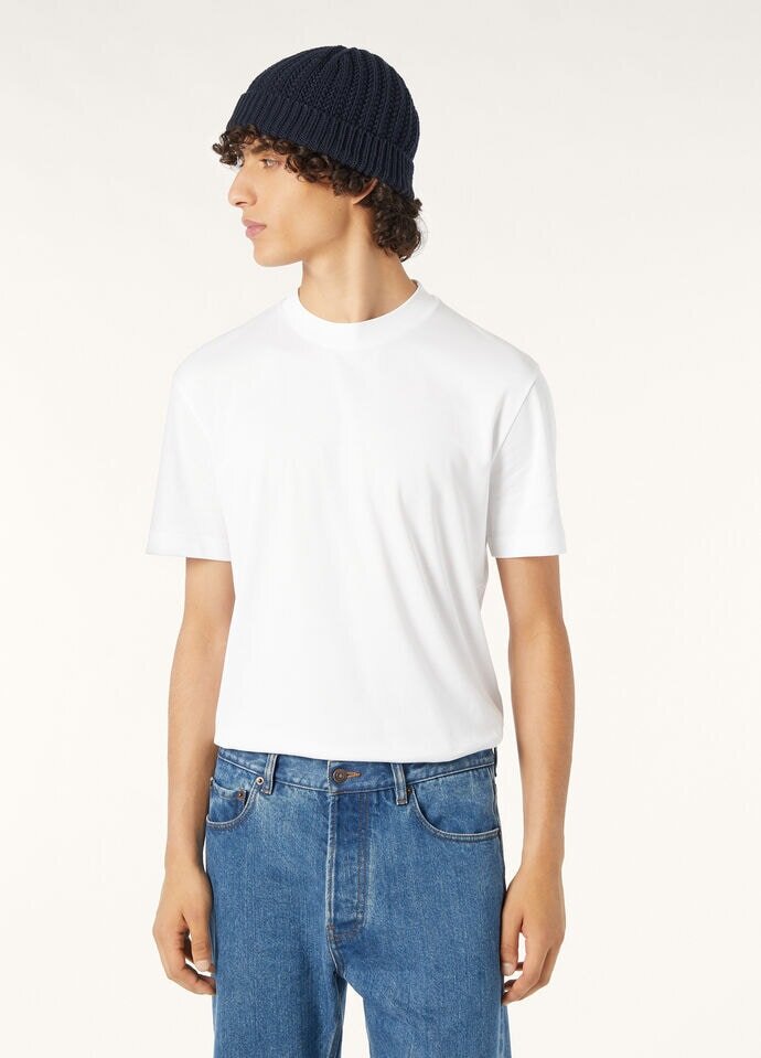 This short-sleeved T-shirt is defined by the neutral shades of the Ligurian Riviera. Crafted from extremely soft, lightweight cotton jersey, it is a minimalist, versatile style. It can be worn anywhere—under a jacket or with summertime outerwear.