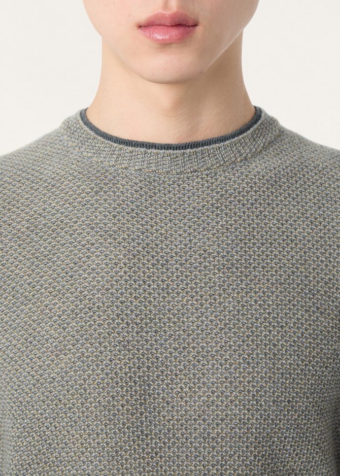 Knit crewneck made from extremely soft, lightweight baby cashmere yarn. Its textured jacquard weave provides a sophisticated three-dimensional allure to the colors. This extremely versatile style can be worn everywhere and is perfect under a jacket.