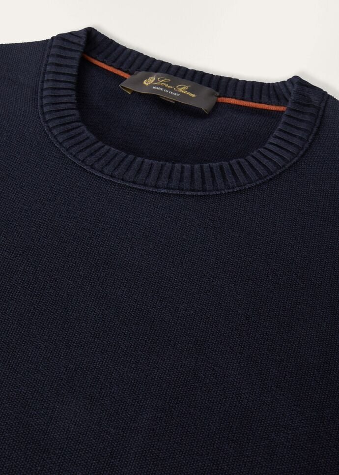 Lightweight crew neck made from extremely comfortable, silk-and-cotton yarn. This flowing, comfortable style features a draped silhouette, dropped shoulders and all-over embossed stitches.