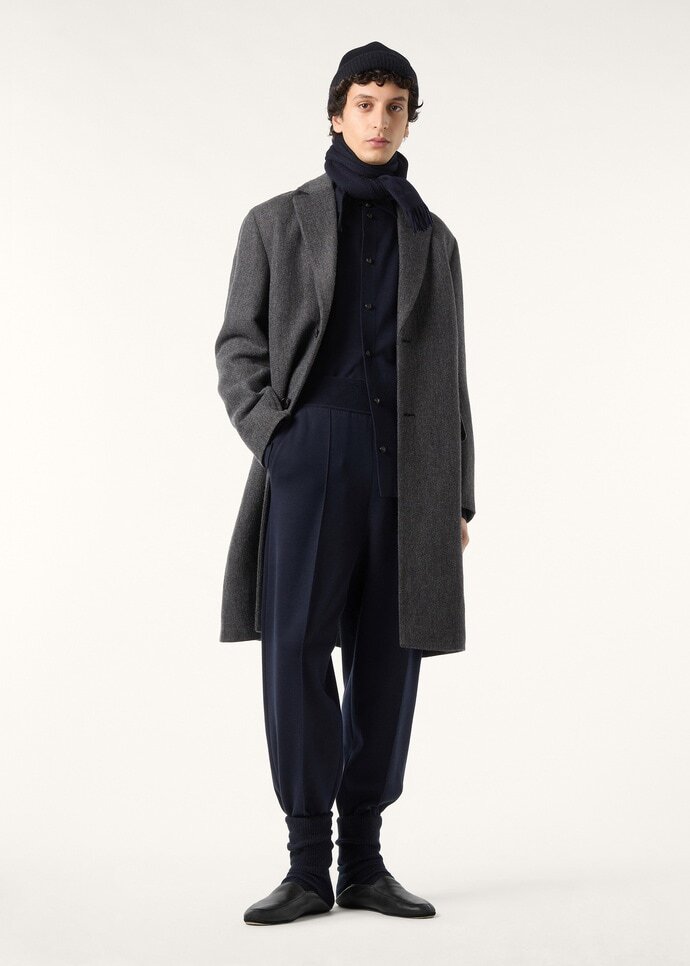 Cut with a straight leg and easy drape, the Agapanto pants are ideal for pairing with the eponymous shirt. They are rendered in a two-layer construction, combining the smooth touch of Sea Island cotton on the outside with ultra-soft Cashmere on the inside. Discreet side-seam pockets add a considered functional note.
