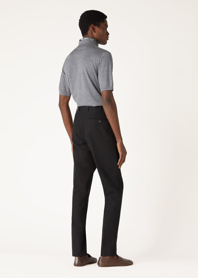 Ultra-soft cotton pants with a touch of stretch. Flat fronted and garment dyed, for an impeccable finished look. Team this versatile casual staple with a jacket or outerwear for contemporary outfits with effortless polish.